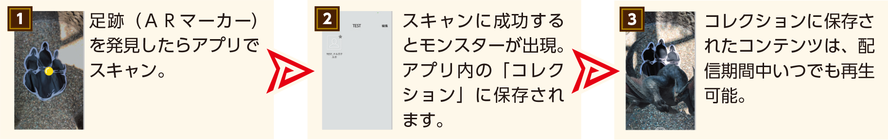 足跡を発見し、撮影することで、『ARモンスター図鑑』の完成を目指せ!