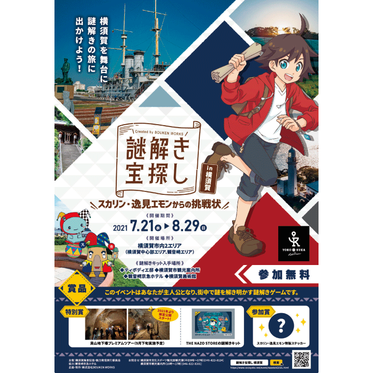 おすすめ!謎解き宝探し~スカリン・逸見エモンからの挑戦状 in 横須賀~日時:2021年 7月21日(水)~8月29日(日)会場:横須賀中心部エリア/観音崎エリア -