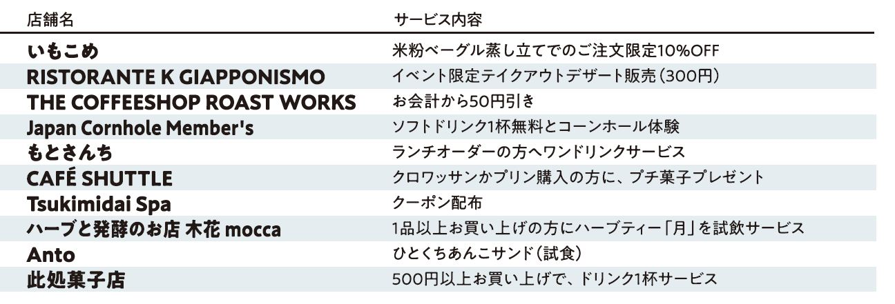 当日、スタート受付で配布するコースマップを指定店舗で提示すると以下のサービスを受けるこ