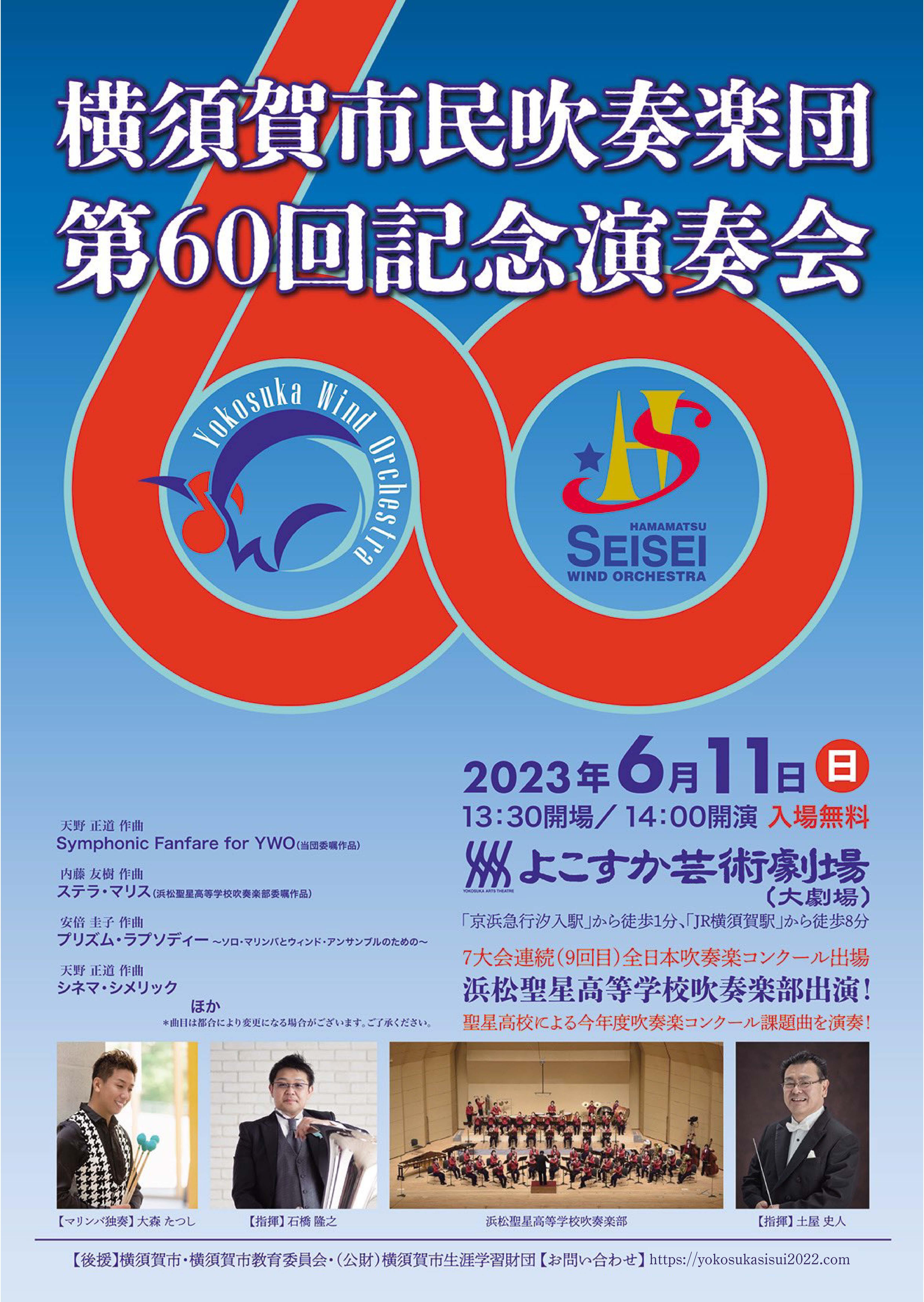 よこすか芸術劇場にて、横須賀市民吹奏楽団 第60回記念演奏会を行います。