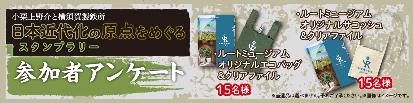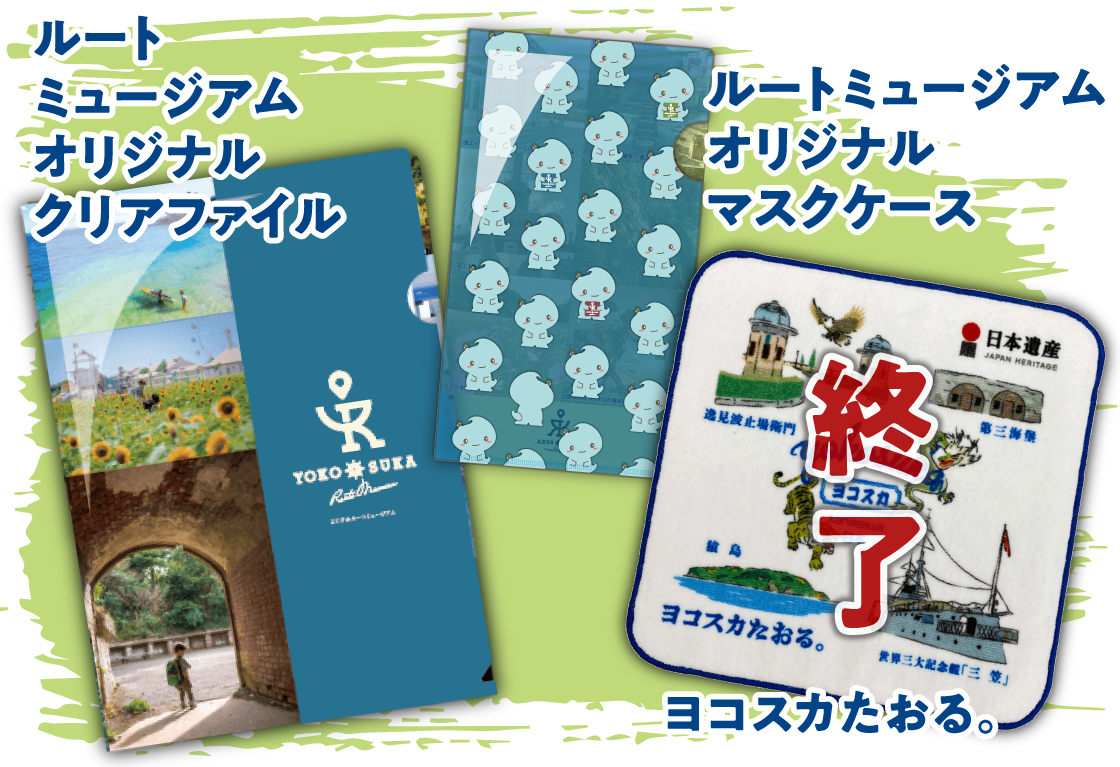 「ヨコスカたおる。」「ルートミュージアムオリジナルクリアファイル」「マスクケース」いずれか1点をプレゼント(先着300名様。なくなり次第終了)