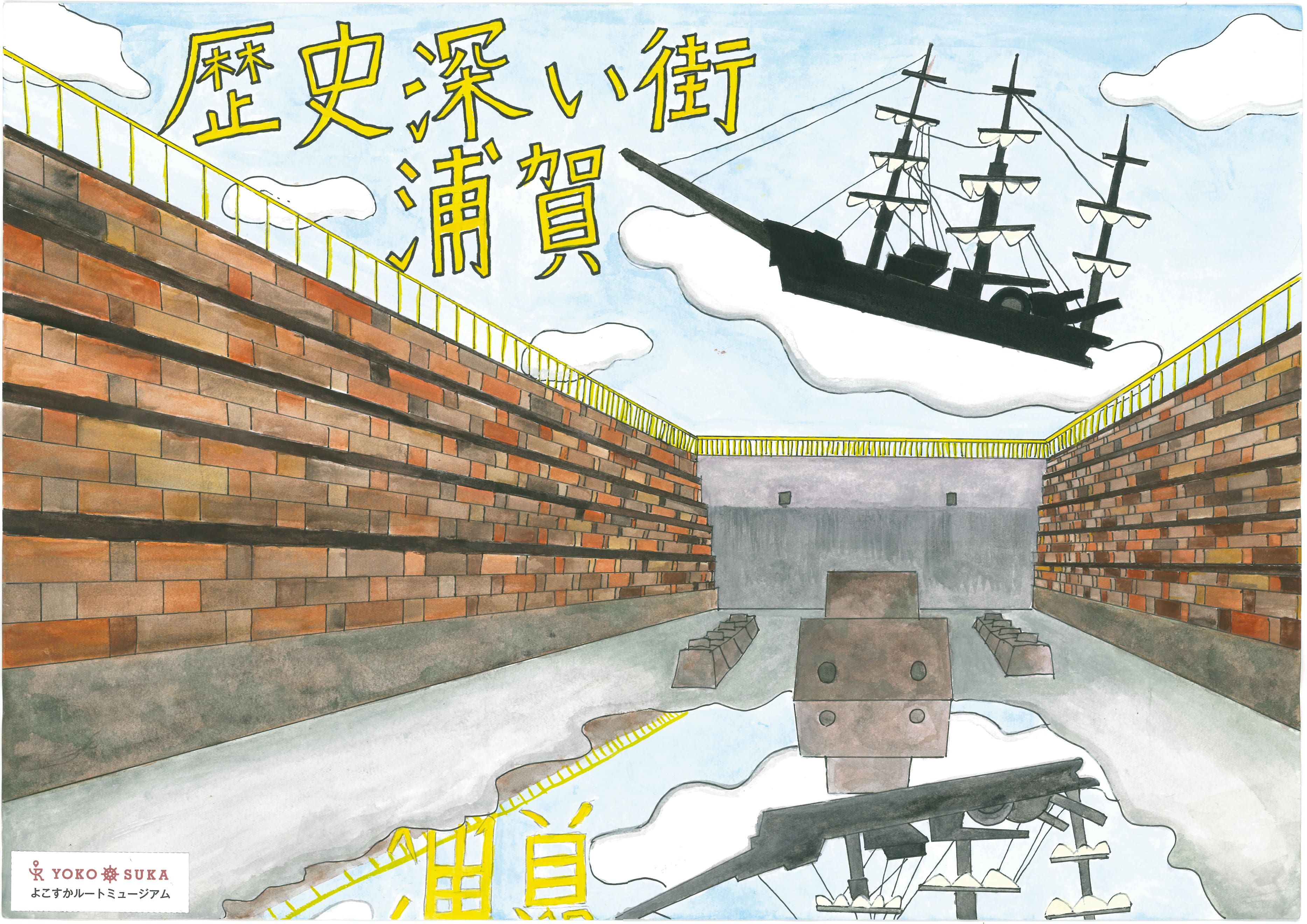 この作品は、レンガドックを中心にしたものであるが、そこに「黒船」を浮かべ、さらには反転させた黒船まで描いており、ドックの底の水たまりをいつも気にしている私にとっては、ただ「なるほど」としか言いようがありません。「浦賀といえば思い浮かぶ二つ」を見事に表し、ここからさまざまな物語が語れそうな作品でした。