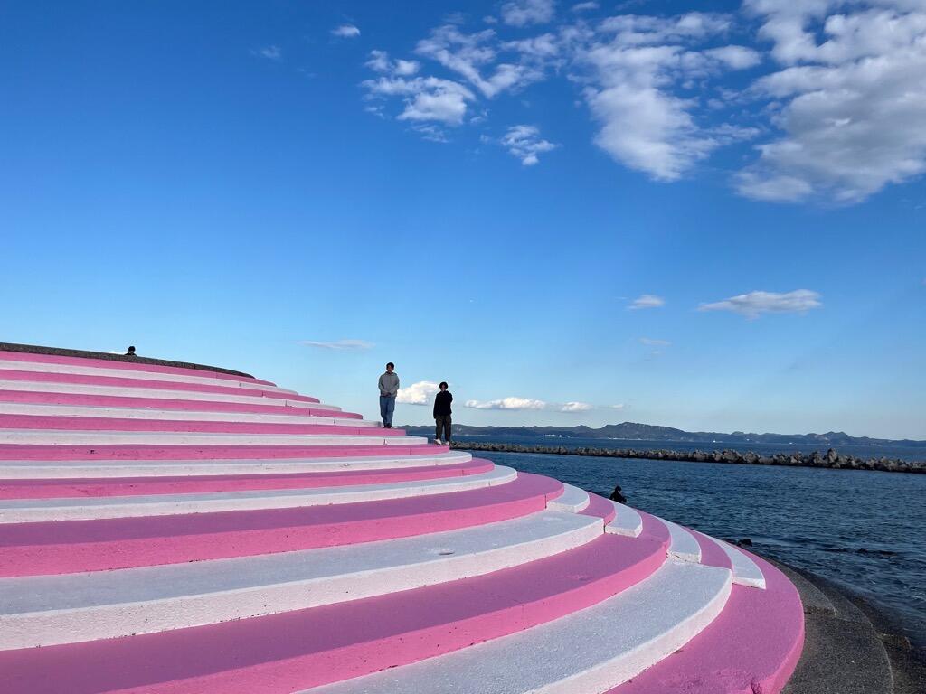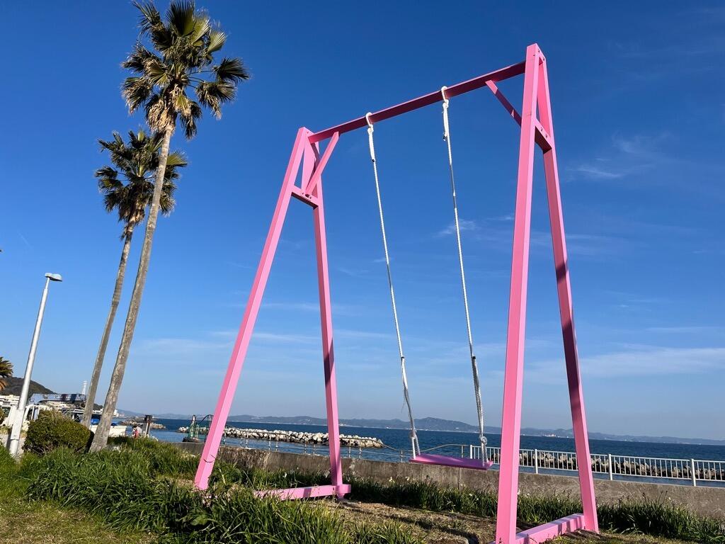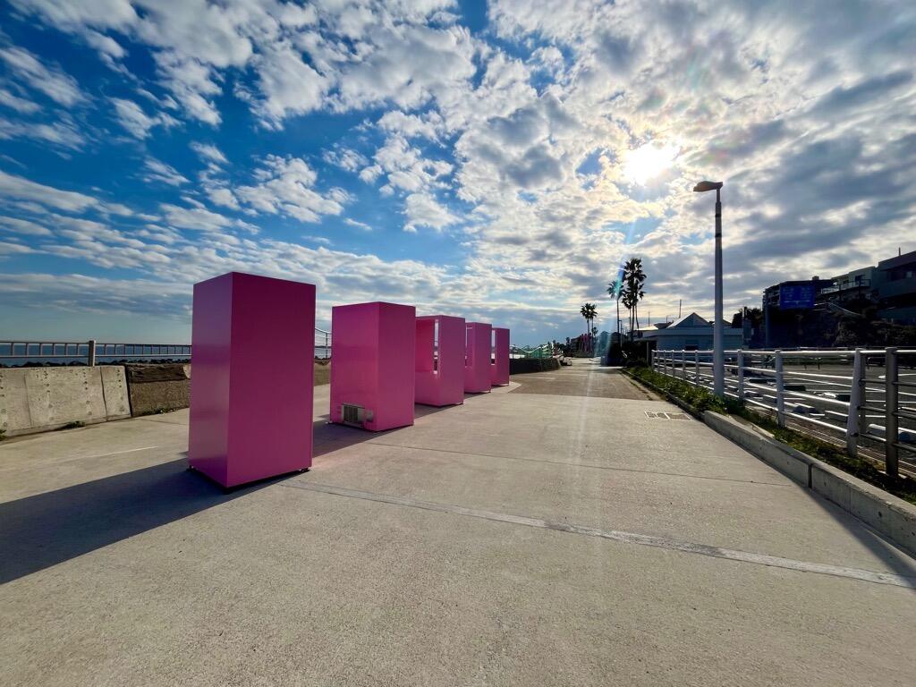 対岸に房総半島が見え、海岸線の眺望が楽しめる絶景スポットに高さ6メートルの「巨大アートブランコ」や、「#ジハングン」の由来でもあるリアルとフェイクが入り混じった「自動販売機の群」をはじめとする、様々なスタイルのアートコンテンツが海岸沿いの遊歩道に点在しています。