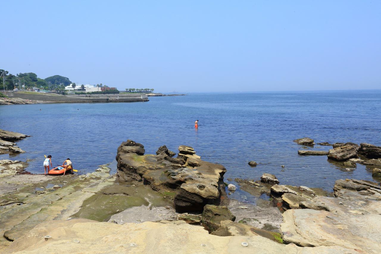 海岸沿いの遊歩道からは、変化に富んだ自然美あふれる岩礁を眺めたり、海水浴、磯遊びができる砂浜へアクセスできます。